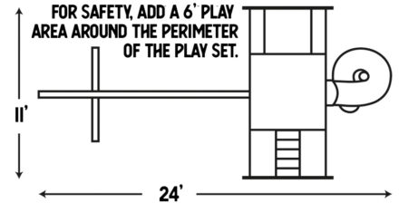 Play set for kids who love playing house or camping. Features a play fort with ladder and climbing platform, 4-position swing beam, and a 4-chain rubber tire swing. Try it out on your back yard with our Augmented Reality visualizer!