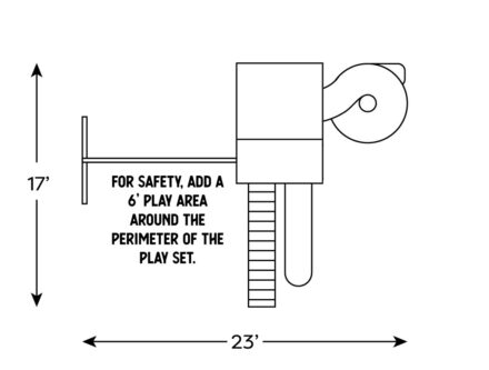 Kids’ sanctuary for imaginative play or energetic fun with friends. No adults allowed! Includes a 6′ play area around the perimeter, 6’x5′ playhouse on a 6’x8′ deck mounted on 4×4 skids for ground-level use. Try it out on your back yard with our Augmented Reality visualizer!
