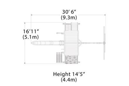 The Titan Peak Jumbo 1 playset is our largest and tallest base fort structure for parents and children to climb, swing, and slide together! The fort structure has a 7′ high deck with 44 sq. ft. of play space. This playset also includes a wood roof, 2 – gable kits, 3 position 10′ swing beam, 3 – belt swings, 14′ rocket slide, fireman’s pole, accessory arm with rope ladder, and an accessory arm with trapeze bar. Peak Series play sets include our exclusive limited lifetime warranty on all wood, metal, and hardware components.
