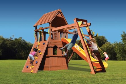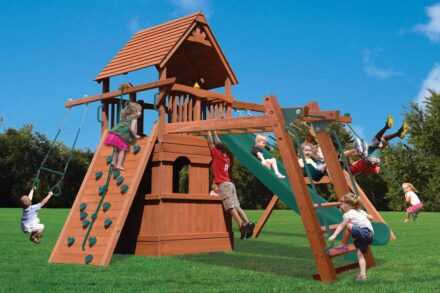 Exercise and movement are vital parts of a child’s development. This fort playset has different types of equipment to facilitate active play and enable different kinds of movement, including swinging, climbing and sliding. With this outdoor fort in your backyard, your children can get moving by: