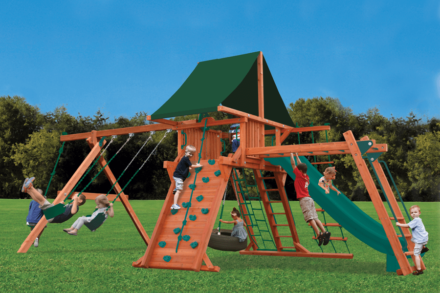 | Playset Features | Monkey Bars, Rockwall, Rope Ladder, Rotational Tire Swing |